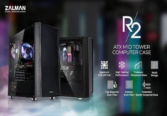 Zalman R2 Black Atx Mid Tower Kasa 1 x Kulaklık, 1 x Mikrofon, 2 x USB 2.0, 1 x USB 3.0, PCI/AGP350MM